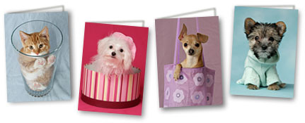 Show off your pets on the cover of these adorable 5x7 folded note cards - so cute, your friends won't believe their eyes! All cards in the set feature the same glossy cover image and can be ordered blank on the inside perfect for handwriting your own notes or with an imprint displaying your custom greeting. Cards include 5x7 white mailing envelopes.
